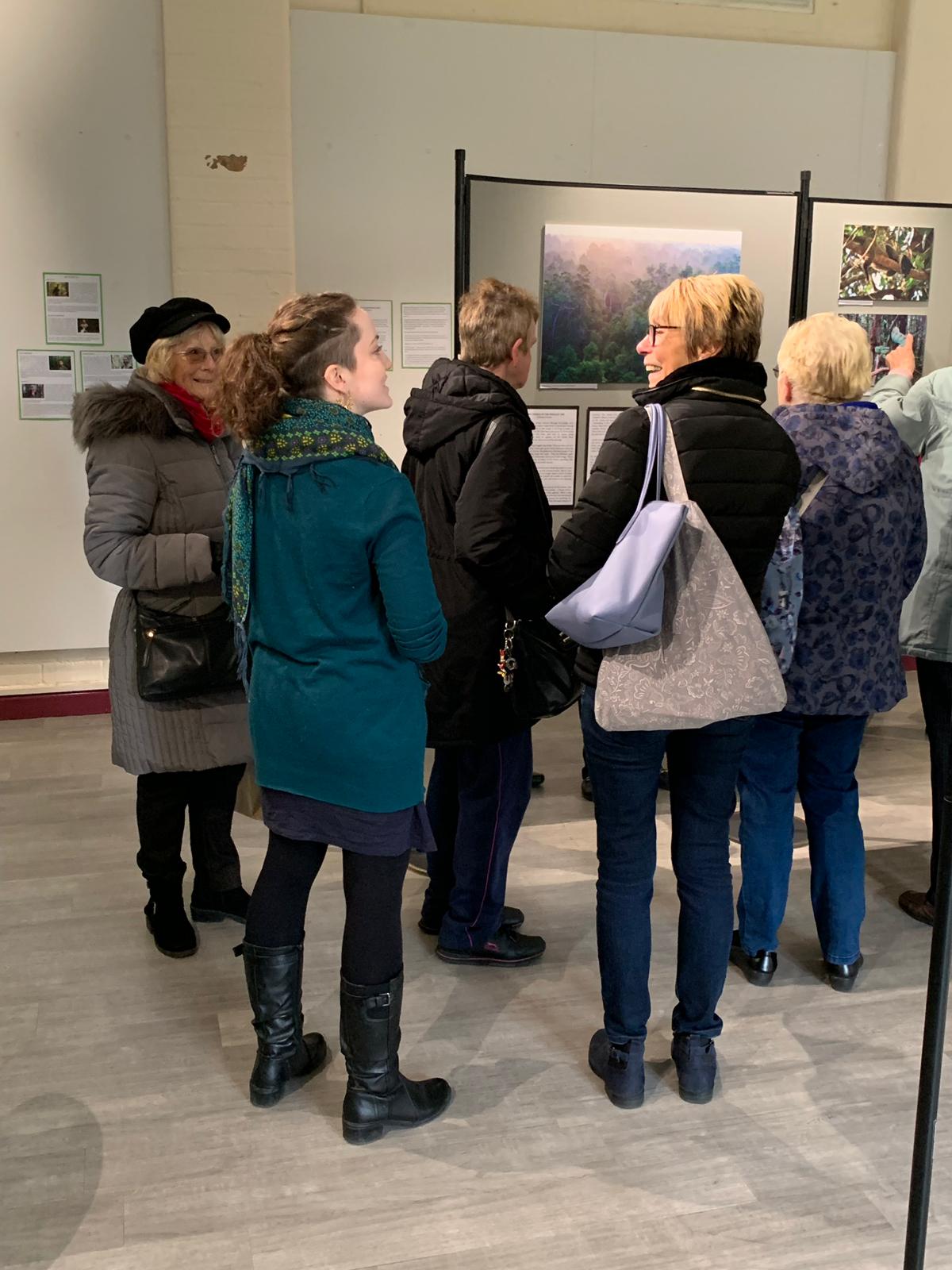 Sara Thornton discussing peatland with visitors, Into the Swamp Exhibition