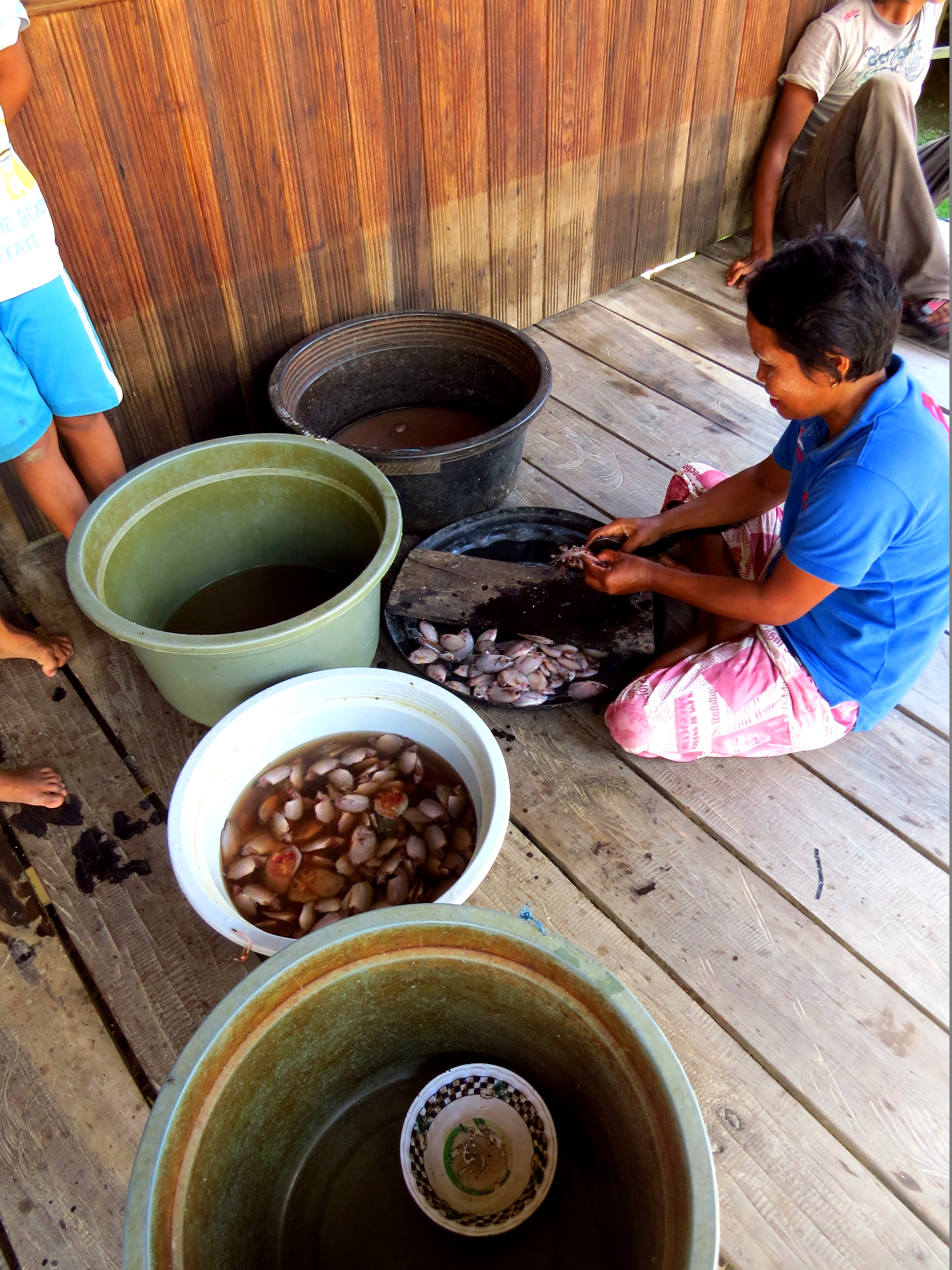Fisherwoman in Tanjung Taruna processing her catch. Photo by Sara Thornton
