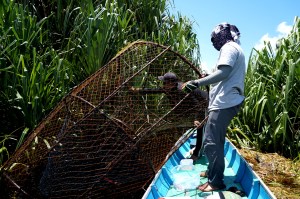 Dudin, who is also an experienced fisherman, checks one of his large fish traps. Photo by Sara Thornton Like Loading...